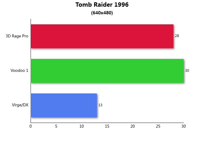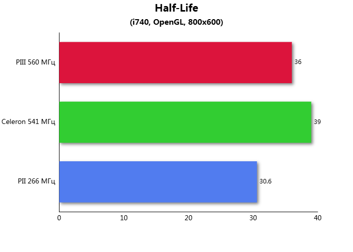 За давностью времени все результаты тестов были потеряны. Помню, что делал сравнение в играх: Tomb Raider I, GLQuake, MDK, MageSlayer, Half-Life, Turok: Dinosaur Hunter, Quake II в разрешении 640х480 и Final Reality от Remedy.