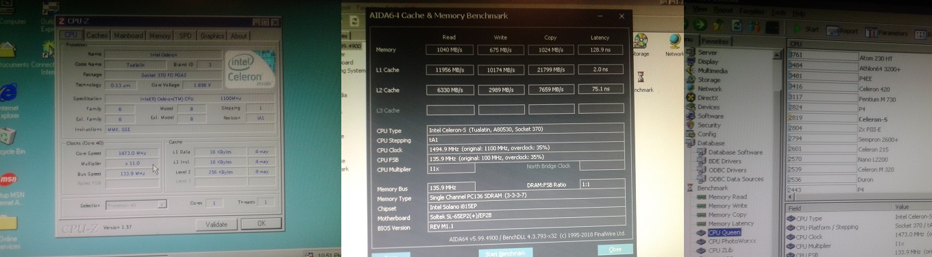 Celeron 1100A позволил легко поднять частоту шины процессора с 100 МГц до 133 МГц, при этом тактовая частота достигла 1473 МГц. В тесте CPU Queen достигнутый результат был близок к Pentium 4 2,8 ГГц.