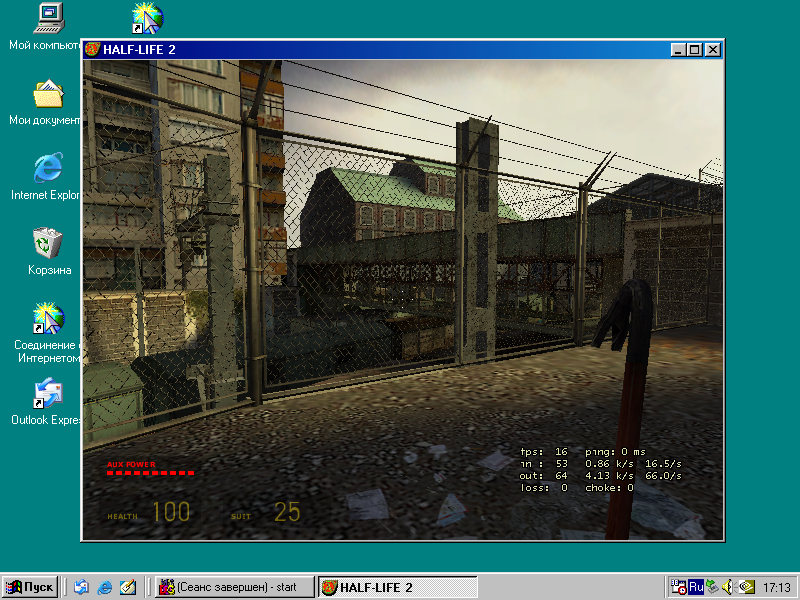 Скриншот игры Half-Life 2 запущенной в окне в Windows 98 SE