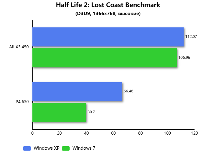 В бенчмарке Half Life 2: Lost Coast разница между процессорами достигала почти двукратной. Правда, в остальных тестовых играх такого разрыва не наблюдалось.