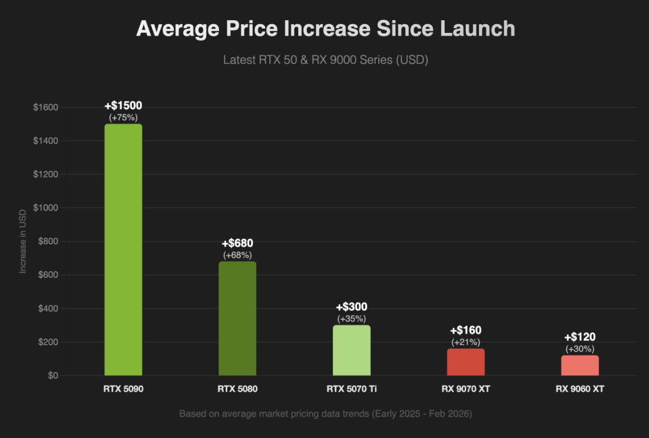 Эксперты отметили ряд негативных тенденций, которые ожидают пользователей игровых компьютеров. Например, информация о задержках анонса видеокарт серий RTX 50 SUPER, RDNA 5 и RTX 60 подтверждает изменение приоритетов разработчиков. Кроме того, такое снижение темпов обновления потребительского сегмента означает уменьшение инноваций и производительности будущих моделей. Повышение спроса на продукцию, предназначенную для индустрии искусственного интеллекта, снижает количество ресурсов, выделяемых на производство массовых видеокарт, что создает трудности с поставками. А последующий за этим дефицит комплектующих и изменение приоритетов производителей приводят к значительному удорожанию существующих и перспективных видеокарт.