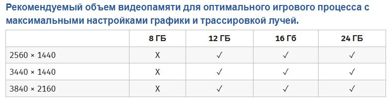 Графические карты с 8 Гб памяти все еще способны справиться с низким разрешением, однако при переходе к разрешениям UWQHD и Ultra HD они уже не могут обеспечить комфортный игровой процесс.