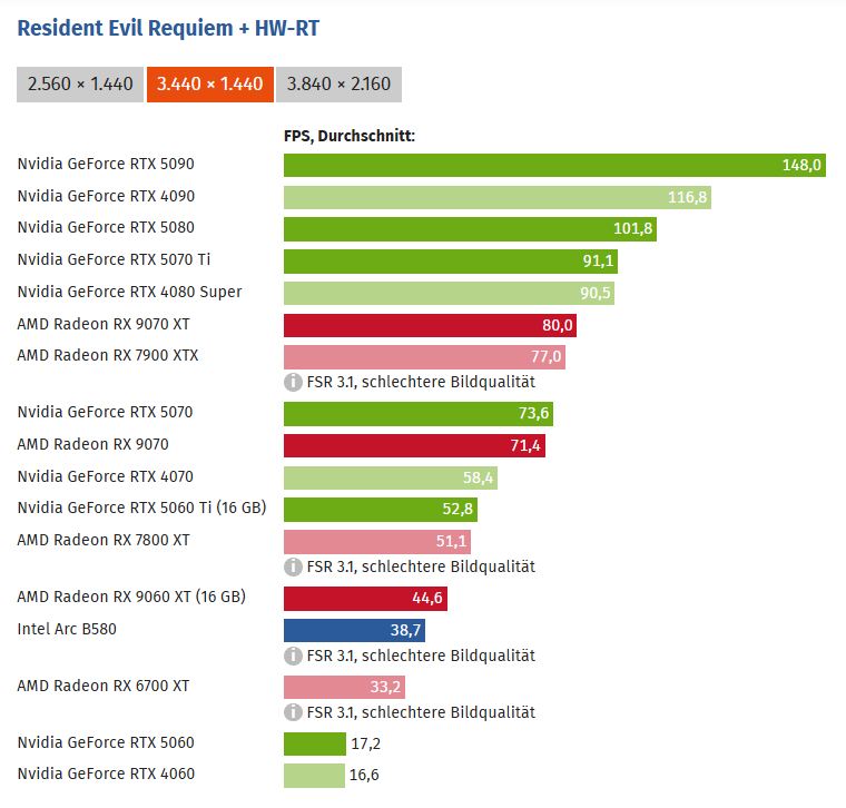 Чтобы стабильно получать свыше 60 FPS в UWQHD, понадобятся ещё более мощные решения — такие как RTX 5070, RX 9070 и старше.