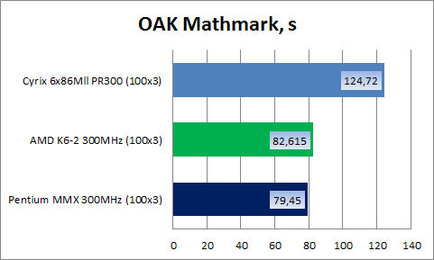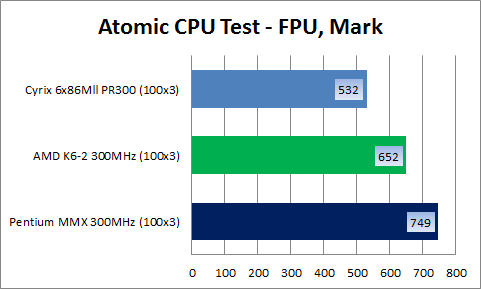 С FPU, разумеется, такой фокус не пройдет. Pentiumушел в заметный отрыв, Cyrix плетется в хвосте отставая от K6 где-то на столько же, сколько тот уступил Intel.