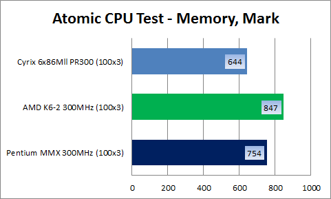 В атомных тестах начинается интересное! М2 догнал К6-2, а Р-ММХ нервно курит в канаве по АЛУ. Прикольно!