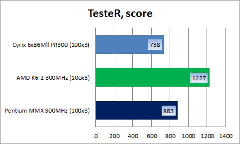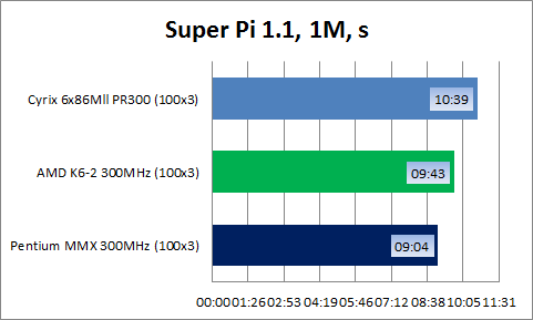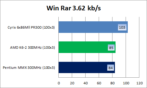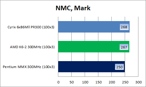 Продолжая противоестественные опыты над обиженным в прошлой серии Cyrix-ом, выяснилось, что у него в наличии неплохой разгонный потенциал. Для Cyrix-а, разумеется. А именно, он без особых проблем берет на воздухе частоту 300МГц, получая при этом мега-рейтинг PR433. Разумеется, немедленно возникла стратежная мысль: а что если сравнить его с тем же К6-2, но уже нос-к-носу, на одной частоте? Дать шанс отыграться за поруганную честь, так сказать. Тут же незамедлительно были проведены соответствующие бенчмарки.