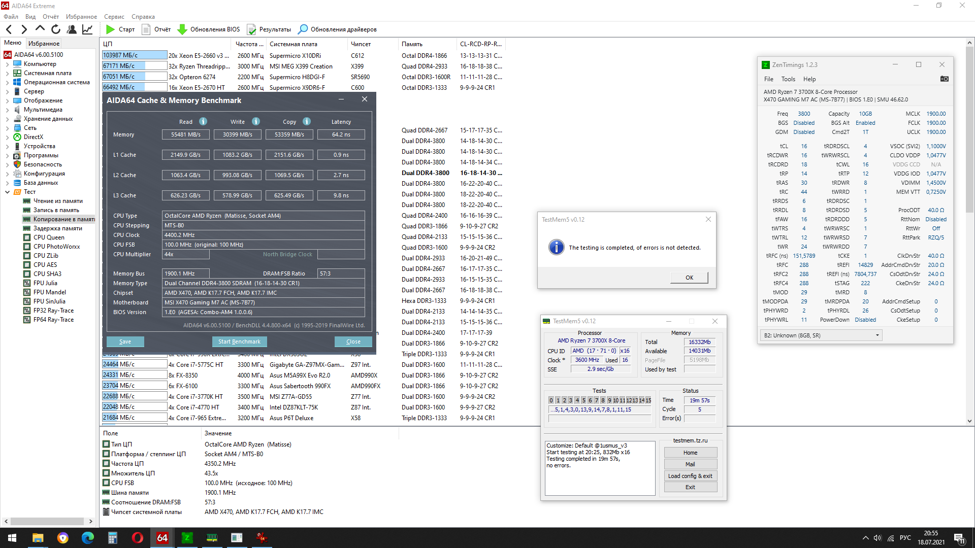 - Материнская плата: MSI X470 GAMING M7 AC, версия BIOS – 7B77v1E(ComboAm4PI 1.0.0.6);