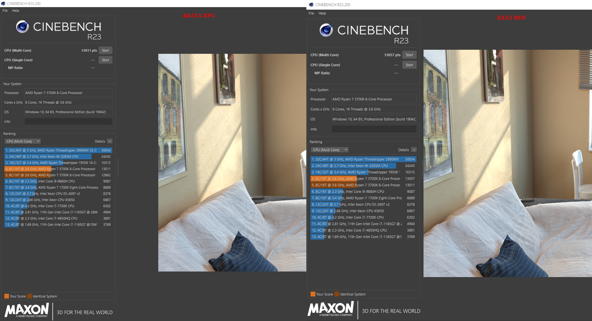 - Память: 2 x 8 Гб ADATA XPG AX4U360038G18A-DW50 (Hynix) DDR4-3600, 2 x 8 Гб KFA2 Hall Of Fame DDR4-4000 (Samsung);