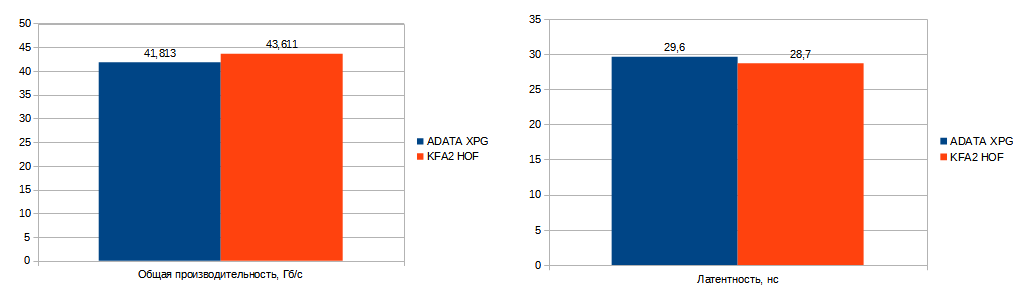 Шина FCLK работает синхронно и это наиболее оптимальный результат для данной платформы. Кстати, для этого пришлось увеличить напряжение до 1,45 В. При тех же условиях на комплекте памяти KFA2 Hall Of Fame с чипами B-die получилось вот так: