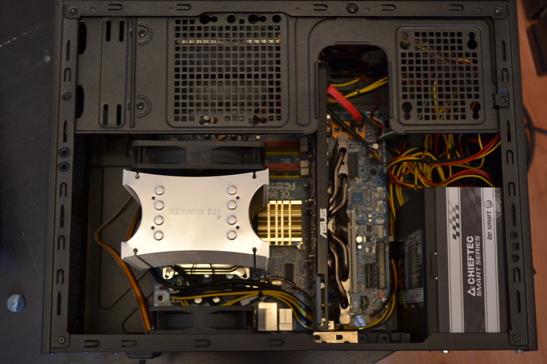 <br/>Последние года 2 задумывался о сборке компактного системника,чтобы и на дачу можно было прихватить,и в любую комнату поставить (на кухне,занимая при этом минимум места. Ничего особенного- интернет,фильмы, не требовательные к железу игры а-ля Lego star wars, PES. Но пока так и не сложилось. На даче стоит "средняя башня", которую транспортировать возможно исключительно на машине. <br/>И тут подвернулся случай- родственник попросил собрать систему с очень скромным бюджетом. Услышав сумму,даже браться сначала не хотел. Но потом вспомнил о комплектующих,что покоились всё это время в кладовке: <br/>-Intel e2200<br/>-мать MSI<br/>-HDD Seagate 250Gb<br/>-2 плашки на 3Гб в сумме.<br/><br/>