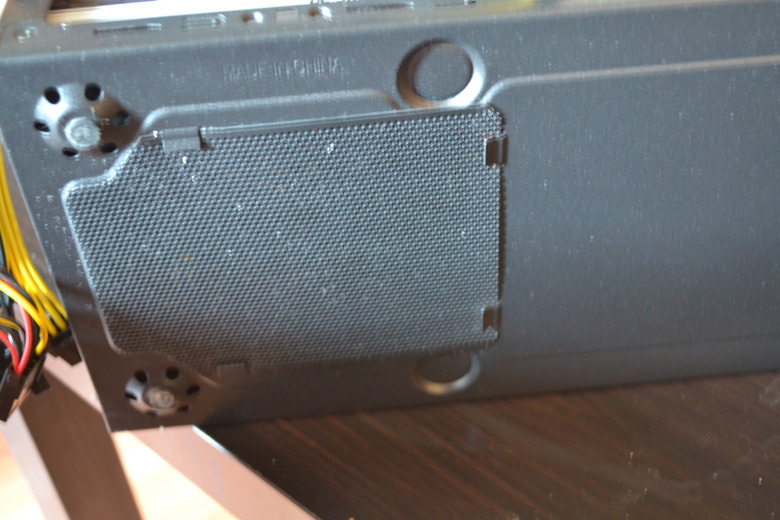 Блок питания был установлен вентилятором вниз,и не зря,как я убедился в дальнейшем. На дня корпуса предусмотрен пылевой фильтр, который закрпелен снаружи
