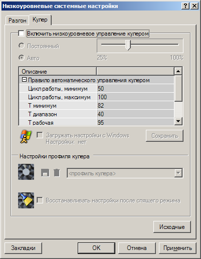 4) Чеким галочку "Включить низкоуровневое управление кулером".