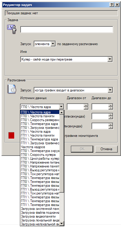 Замечу, что обойтись без автоматизации (тоесть, запуска задач в зависимости от определённых условий) в Riva Tuner не получилось - если просто установить обороты кулера, то они держатся только до момента переключения между 2d и 3d, после чего слетают на управление драйвером. По словам Unwinder, это есть какая то древняя фича АТИ, которую, похоже, исправлять в АМД совершенно не собираются