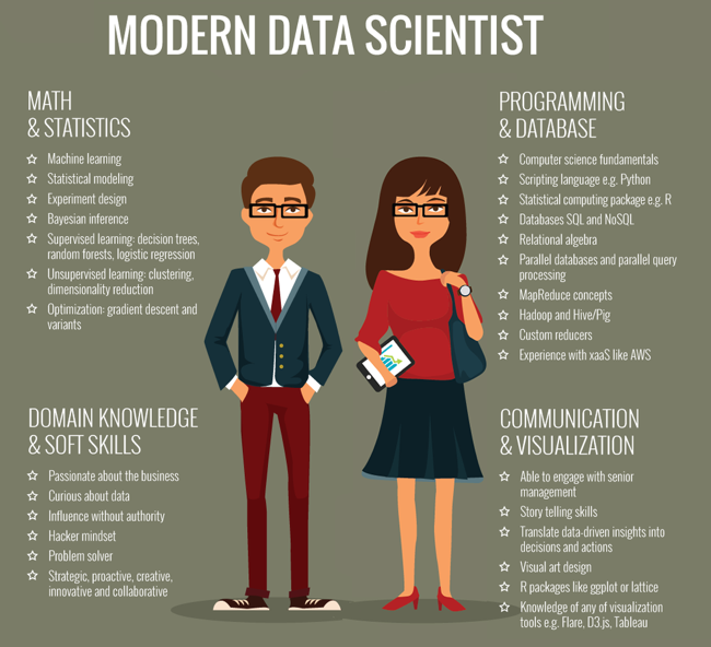 Кроме того, Data Scientist должен обладать упорством, поскольку с первого раза определить идеальную формулу для обучения искусственного интеллекта не представляется возможным. Специалист должен изучать все существующие алгоритмы для выбора того, какой бы идеально подошёл для решения задач.