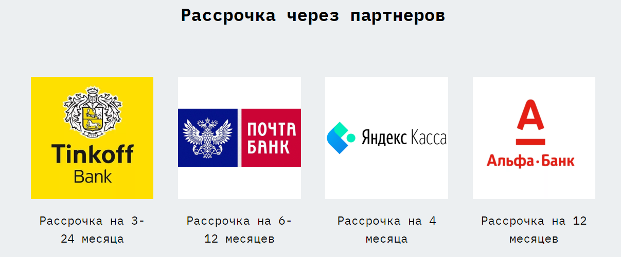 «Тинькофф Банк» и «Альфа-Банк» предоставляют кредит сроком до двух лет без переплат с возможностью оформления без первоначального взноса. Без переплаты оформить рассрочку позволяет «Почта Банк». С помощью «Яндекс.Кассы» оплатить обучение можно в течение четырёх месяцев без переплаты или в течение года с 1,9%-3,9% в месяц.