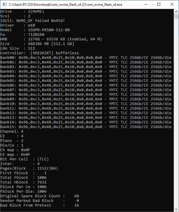 Утилита SMI NVME SSDflashid v0.24a от Вадима Очкина (vlo), утверждает, что производитель чипов компания YMTC из Китая. Но, в интернете можно встретить упоминания, что микросхемы с такой маркировкой производит Intel.
