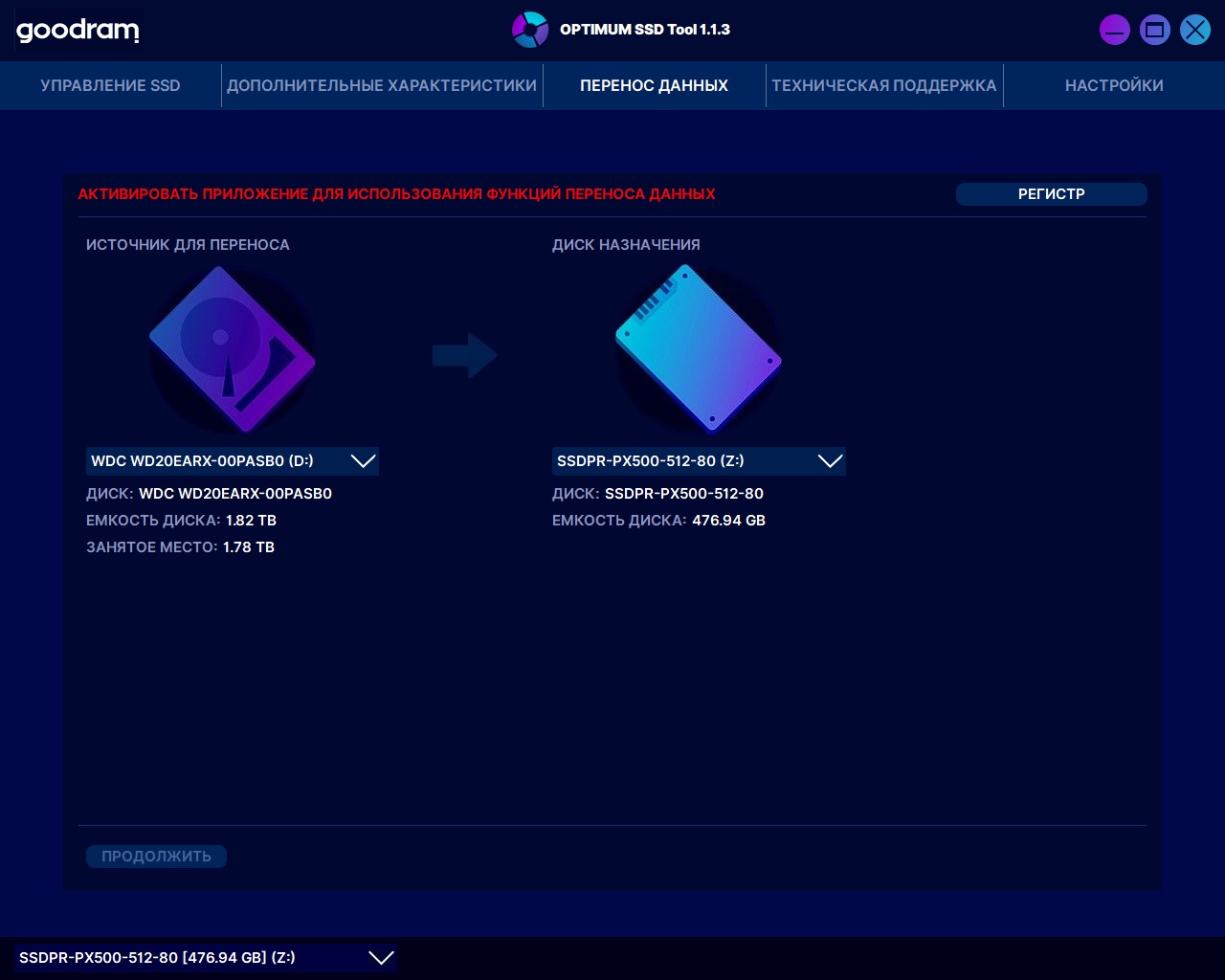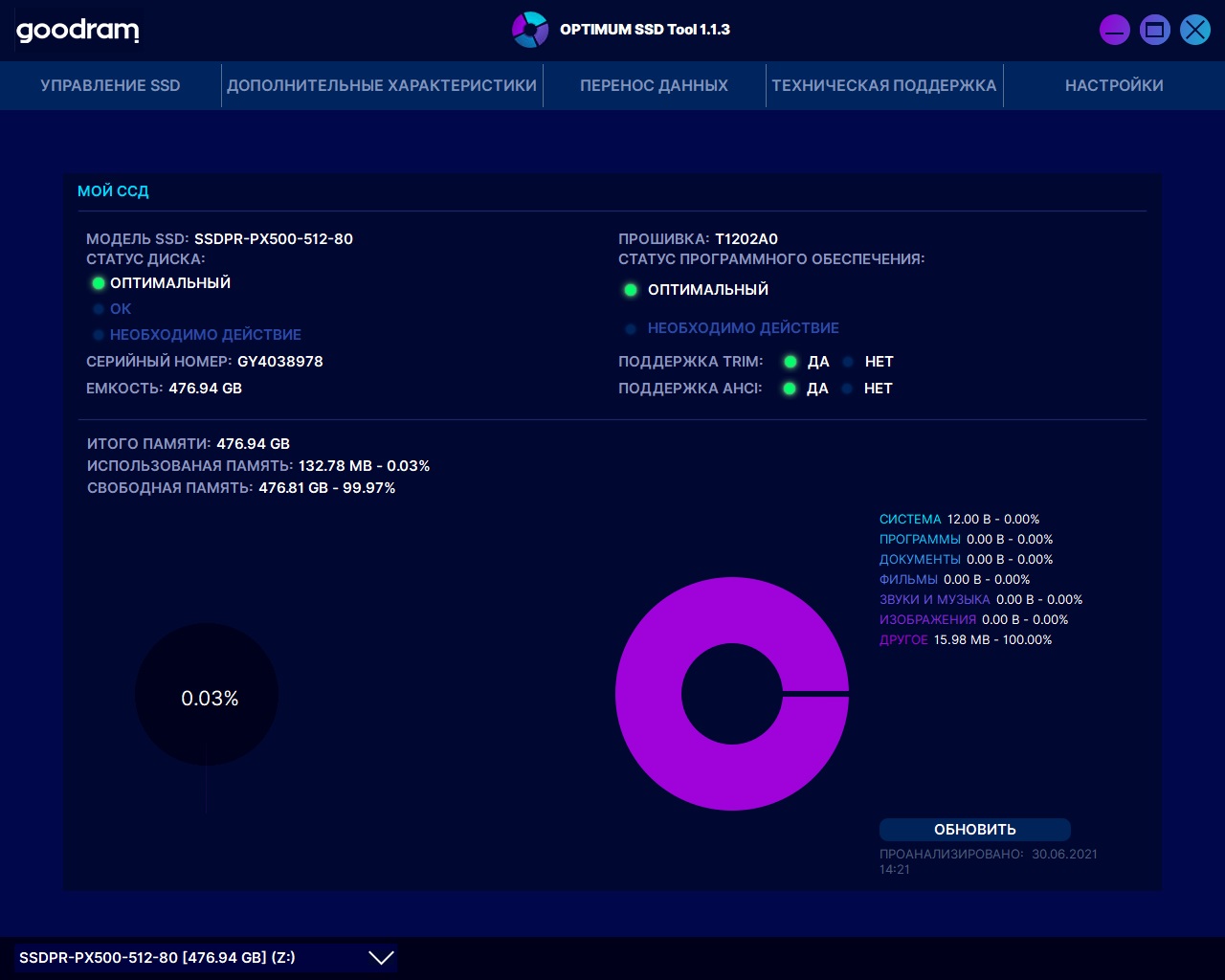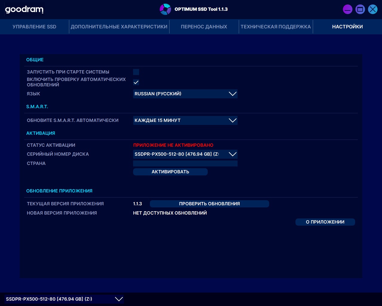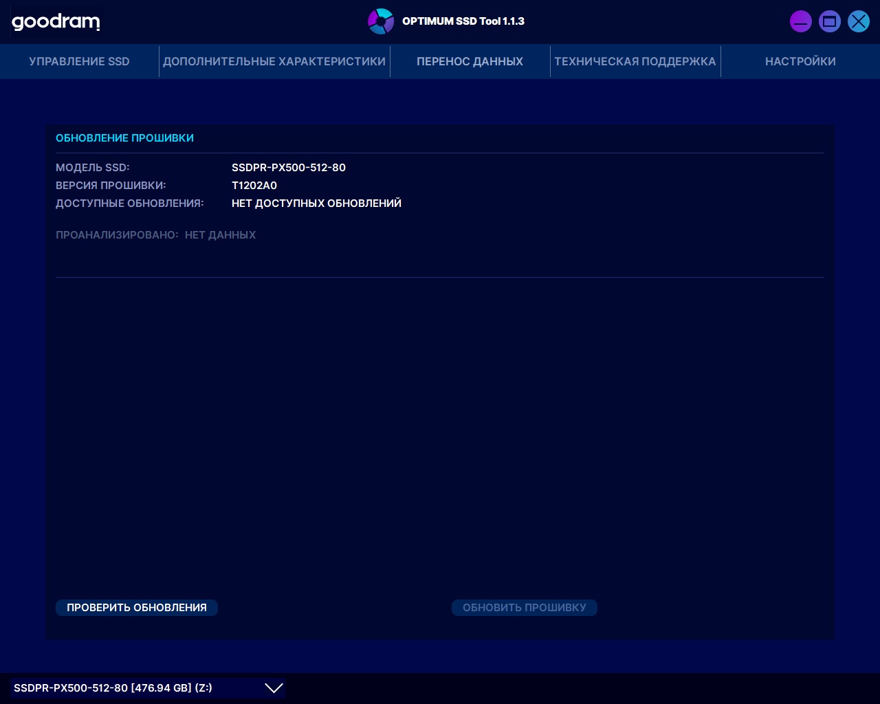 На официальной странице продукта можно скачать скачивать утилиту Optimum SSD Tool. Она позволяет наблюдать за показателями накопителя (в числе прочего за температурой и S.M.A.R.T.), обновить прошивку, перенести данные с одного накопителя на другой. И это не полный список, но подробно описывать функционал нет большого смысла. ПО имеет довольно дружелюбный и понятный интерфейс, в котором сможет разобраться любой пользователь. Да и большая часть функционала понятна по скриншотам.