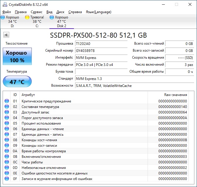 Информация, полученная с помощью CrystalDiskInfo 8.12.2