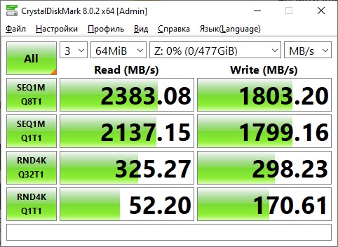 Версия бенчмарка – 8.0.2. Данные – случайные. Количество прогонов – 3.
