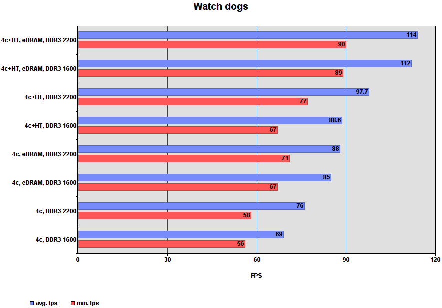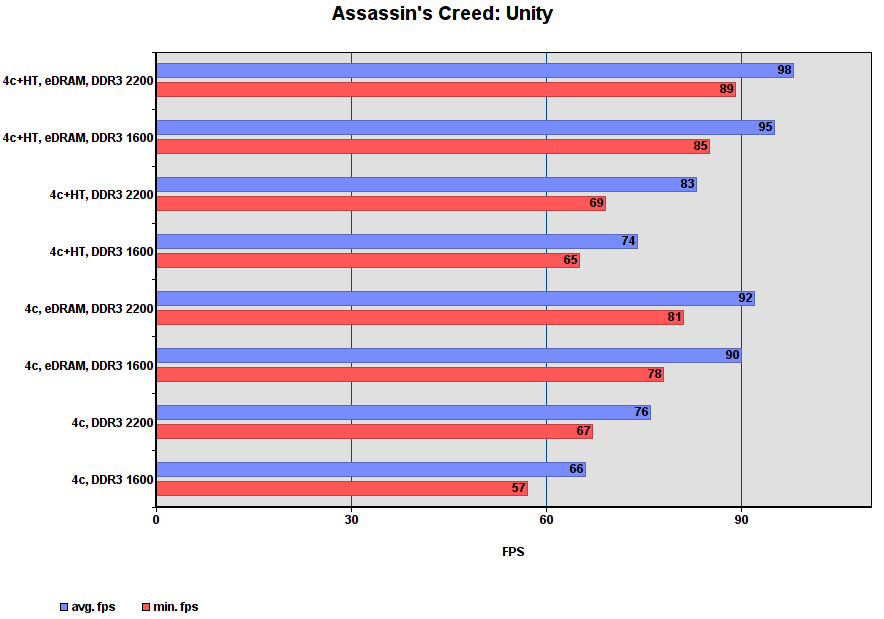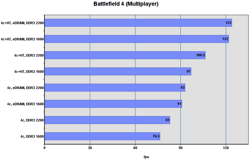 Комментарий: ситуация напоминает BF4 — HT даёт игре больше чем eDRAM, особенно с быстрой DDR3.