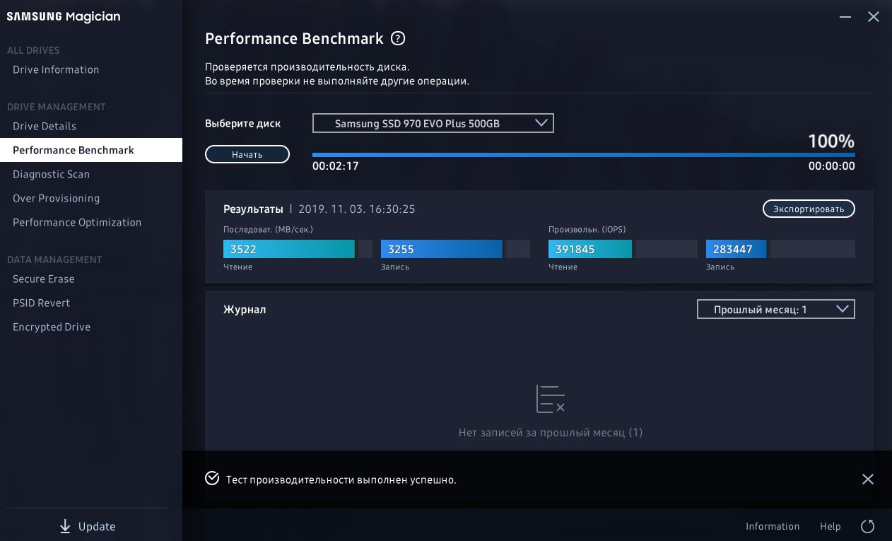 Работая над этой заметкой, я решил показать вам результаты теста своего предыдущего накопителя для наглядного сравнения. Обратите внимание, что "родная" утилита Samsung Magician называет его неправильно, теряя в конце EVO.
