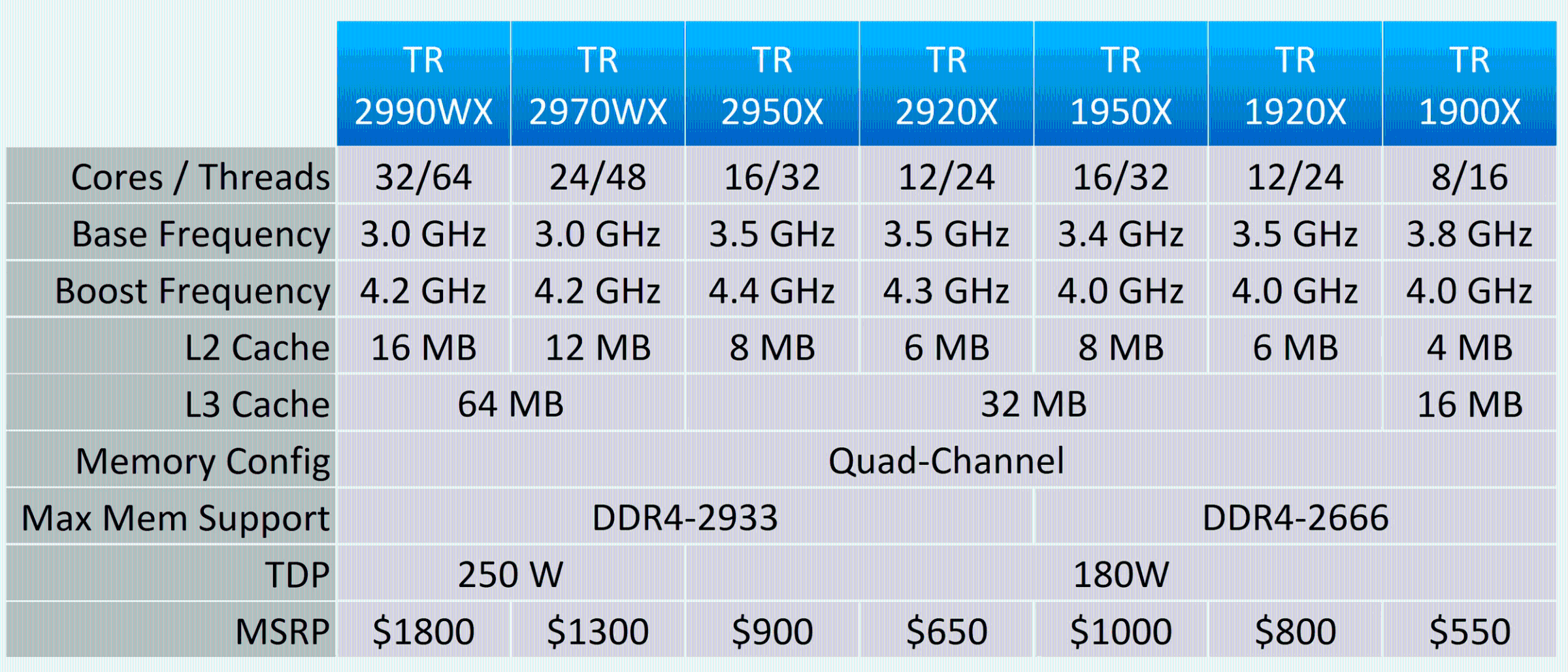 Итак, главный интерес представляет собой 2990WX, а вот основные продажи могут прийтись на 2950X. Это обновлённый вариант процессора 1950X по цене на $100 ниже в момент начала продаж.