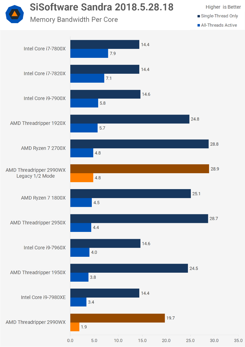 Как уже было сказано, проблемы 2990WX кроются в пропускной способности памяти.