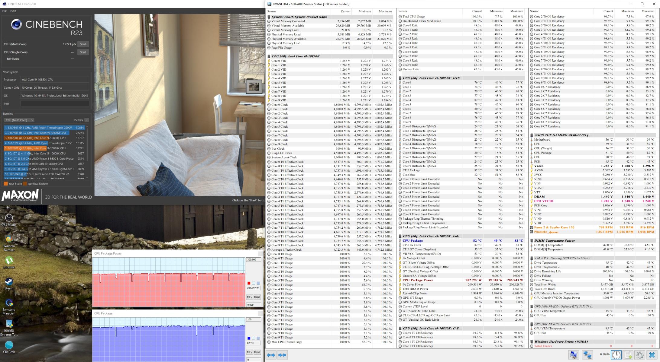 Однако, здравствуйте. В пике уже имеем 98C', что довольно горячо 🔥 🔥 🔥 Но и 278Вт-280Вт уже довольно не мало для процессора в стоке. Но это задачи довольно специфические, давайте вернёмся к более реальным нагрузкам - игры.