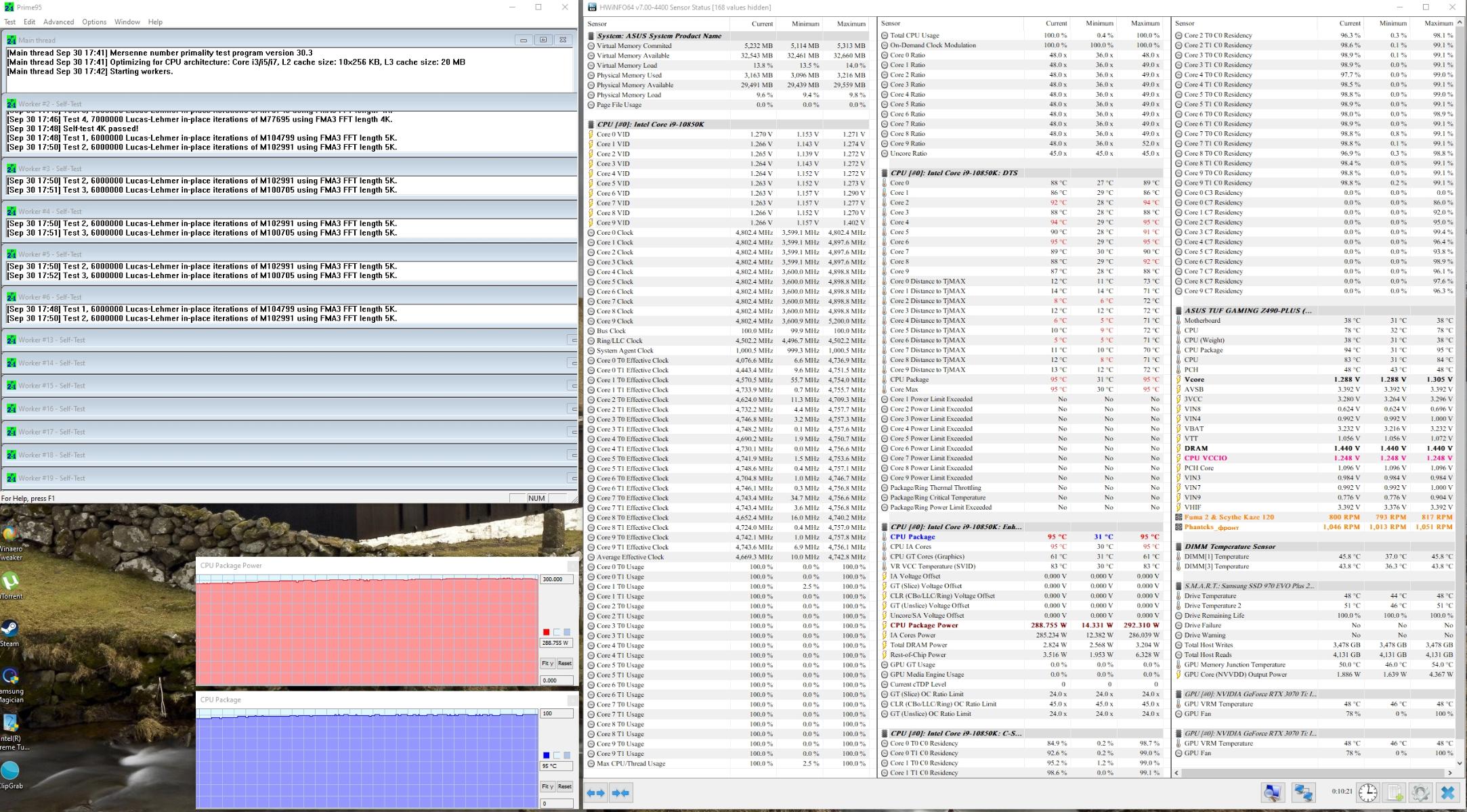 Посмотрим, что нам покажет тест Prime95 при таких же условиях.