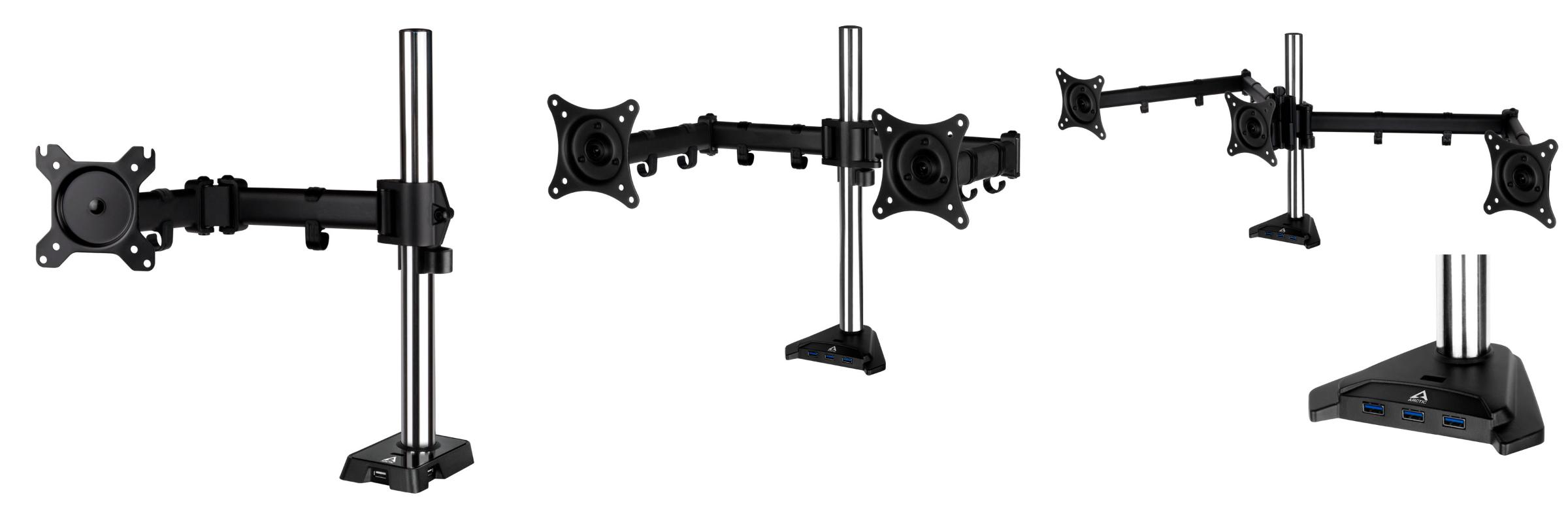 В линейку входят модели Z1, Z2, Z1 Pro, Z2 Pro и Z3 Pro, все они могут похвастаться высокой грузоподъемностью, отличной гибкостью, простой системой монтажа и высоким качеством изготовления. Благодаря новому матовому черному покрытию и переработанной системе прокладки кабелей новые кронштейны отличаются как визуально, так и функционально от своих предшественников. Все модели Gen3 имеют легко доступный USB концентратор с четырьмя портами и подходят как для стандартных широкоформатных мониторов, так и для сверхшироких моделей. Модели Z Pro, за счет дополнительных наборов, могут быть модернизированы для установки одного или двух дополнительных мониторов сверху. Модели Pro поставляются с блоком питания, подключаемым через Micro-USB, для обеспечения портов USB 3.0 дополнительной энергией.