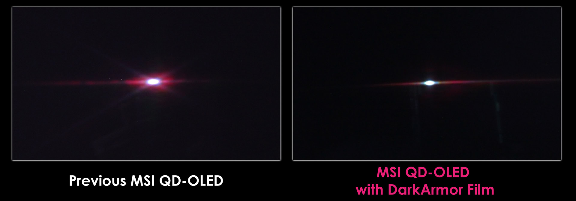 Оба монитора оснащаются плёнкой DarkArmor, которая поглощает свет и эффективно препятствует появлению фиолетово-красноватых ореолов при ярком окружающем освещении. Плёнка улучшает отображение чистого чёрного цвета, контрастность и качество изображения, а также защищает дисплей от царапин. DarkArmor повышает твёрдость поверхности экрана с 2H до 3H.