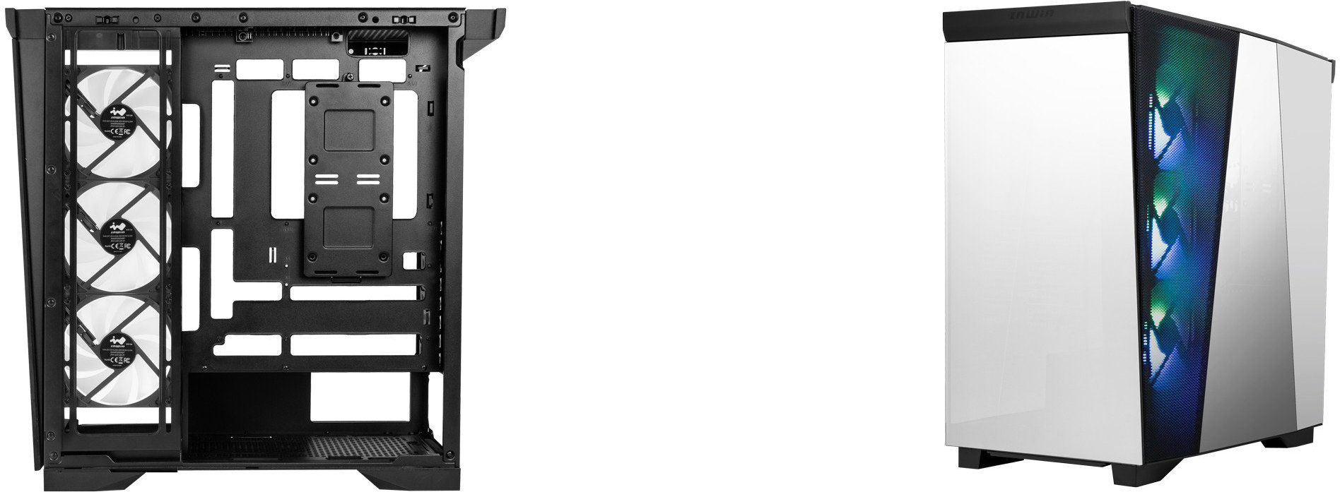 В корпусе предустановлены четыре вентилятора InWin Vortex VX120, всего поддерживается до девяти вентиляторов. На верхней панели предусмотрена возможность установки радиаторов типоразмера 280 и 360 мм, ещё один радиатор 360 мм можно установить сбоку. В комплектацию входит ARGB-концентратор с поддержкой 19 режимов подсветки, подсветку можно синхронизировать с помощью ПО производителя материнской платы.