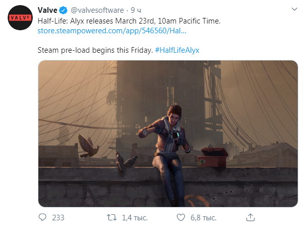 источник: официальный twitter канал компании VALVE @valvesoftware