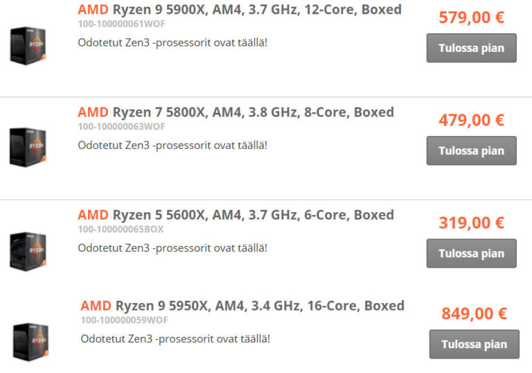 Производитель решил повысить цены на модели своей новой линейки. Ryzen 9 5950X, единственный на данный момент 16-ядерный и 32-поточный процессор AMD Zen3 будет стоить 750 фунтов стерлингов, в то время как Ryzen 9 3950X был доступен по цене 729 фунтов стерлингов на момент старта продаж.