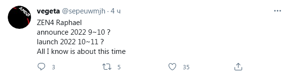К концу 2022 года Intel должна представить процессоры Raptor Lake-S, которые будут оптимизированной версией Alder Lake-S и этот момент является наиболее подходящим для выхода процессоров Raphael на базе новой архитектуры Zen 4.