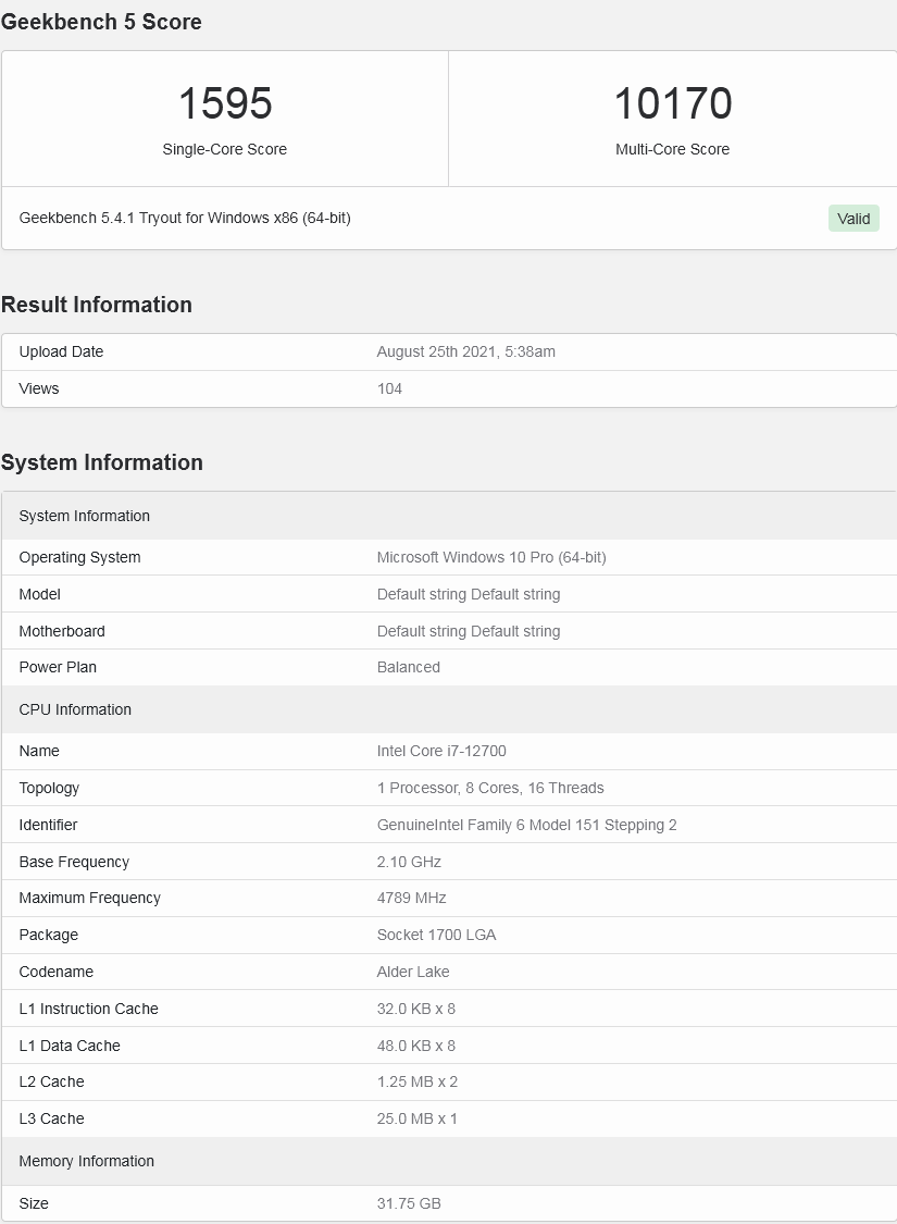 Процессор Intel Core i7-12700 отметился в бенчмарке Geekbench достаточно неплохими результатами. Максимальная частота представителя Alder Lake-S приблизилась к отметке 4,8 ГГц при базовом ее показателе 2,1 ГГц. Вероятно, верно определить количество ядер программное обеспечение не смогло, пока Geekbench учитывает количество быстрых ядер, которых у модели 8. Официально конфигурация процессора неизвестна, по предположениям, она будет также включать 4 эффективных ядра, а значит количество потоков должно быть равно 20.