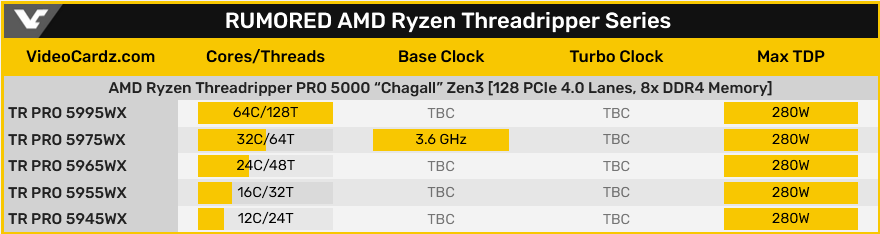 Источник VideoCardz утверждает, что линейка новых процессоров AMD Ryzen Threadripper будет включать пять моделей для рабочих станций класса PRO Workstation. Похоже, что на данный момент не планируется выпуск обычных HEDT версий, не PRO. Как отмечает ресурс, среди производителей и поставщиков большинство придерживаются единого мнения — новый Threadripper должен был быть выпущен на год раньше. С этим трудно не согласиться, по слухам, Intel планирует новую линейку процессоров для рабочих станций в 2022 году, они будут поддерживать DDR5 и PCIe 5.0 — конкурировать с такими продуктами будет сложно.
