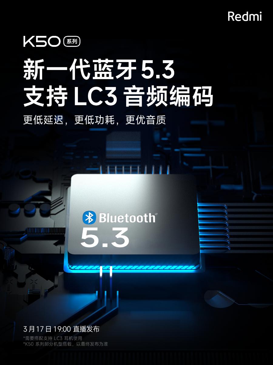 Также сегодня официально стало известно, что серия Redmi K50 предложит поддержку Bluetooth 5.3. Новый стандарт выделяется меньшими задержкой и энергопотреблением, что привлекает любителей игр, а для любителей музыки Bluetooth 5.3 предложит хорошую защиту от помех и улучшение качества звука с поддержкой нового аудиокодека LC3.
