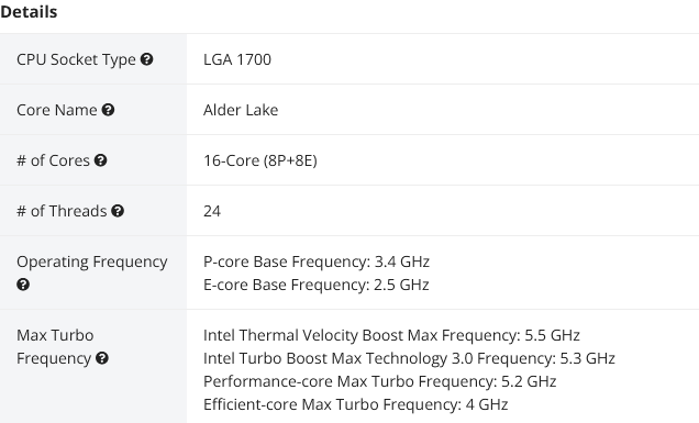 В каталоге американской торговой площадки Newegg появился процессор Intel Core i9-12900KS, сообщает VideoCardz. Это новый флагман линейки, для которого, вероятно, используют отборные кристаллы, чтобы достичь максимально возможной частоты – пиковое её значение для производительных ядер достигает 5,5 ГГц. Листинг характеристик на Newegg раскрывает дополнительные, ранее неизвестные подробности. Если верить опубликованным спецификациям, эффективные ядра процессора работают на частоте до 4 ГГц, при базовом значении 2,5 ГГц. Таким образом, турборежимы процессора для P/E-ядер предлагают частоты на 300/100 МГц выше чем у Core i9-12900K.