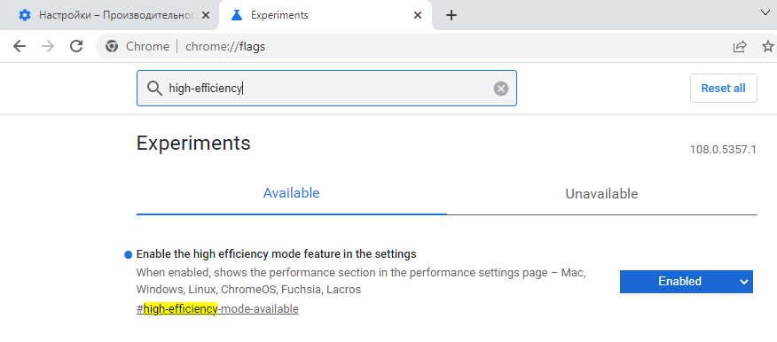 При включении экономии памяти в интерфейсе браузера, в омнибаре, появится специальная кнопка, при нажатии на которую Chrome уведомит пользователя о сэкономленном объёме памяти, когда данная вкладка была неактивна. Так можно будет выявить те кладки, которые больше всего нагружают память. Настройки производительности доступны в тестовой версии Google Chrome Canary 108, возможно, чтобы получить к ним доступ, потребуется найти и включить high-efficiency-mode в экспериментальных настройках chrome://flags. Когда функция появится в финальной версии Chrome, пока неизвестно.