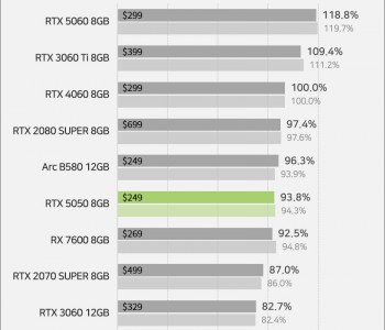 NVIDIA GeForce RTX 5050 отстаёт от Intel Arc B580 и RTX 4060 в первом обзоре