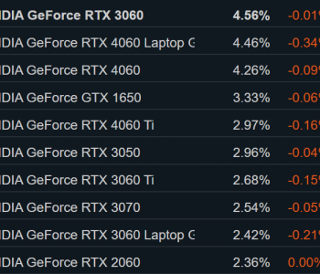 GeForce RTX 3060 снова на первом месте в статистике Steam, доля Windows 11 продолжает расти