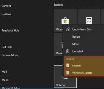 В апрельском обновлении Windows 10 в контекстном меню плиток «Пуск» пропал список недавних файлов