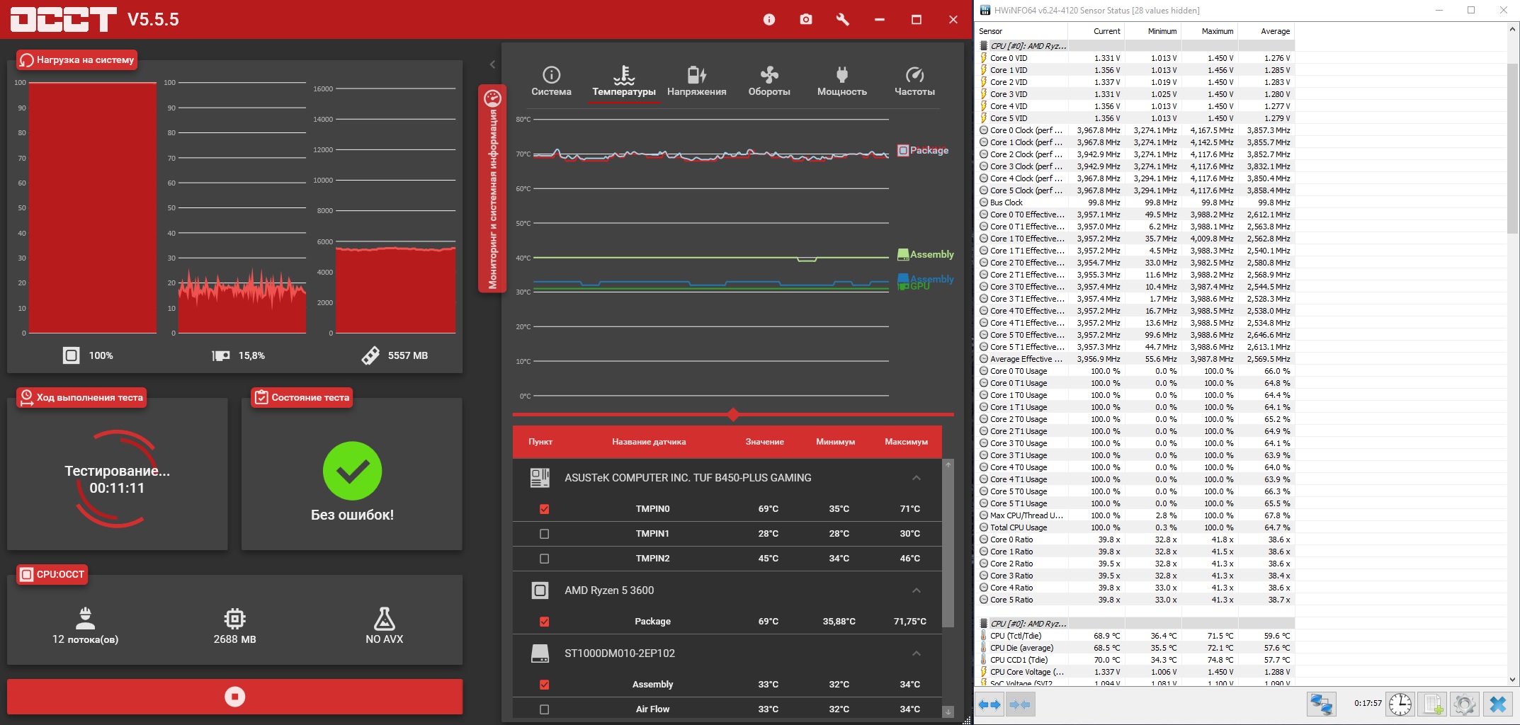 Прогрев в ОССТ показывает ту же разницу, что и в простое. Минус градус от стока, плюс четыре градуса от Dark Rock.
