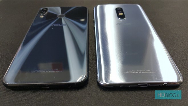 У более крупной модели сзади расположится площадка камеры (по центру), объединяющая два датчика изображения, двухсекционную светодиодную вспышку и лазер автофокуса. Ниже будет размещен логотип ASUS. Судя по всему, сканер отпечатков пальцев будет встроен в экран. Это значит, что смартфон получит OLED панель.