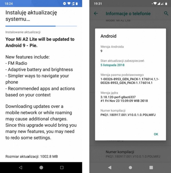 Летом этого года с коротким временным интервалом китайский производитель Xiaomi представил два абсолютно идентичных телефона с одним отличием. Redmi 6 Pro получил оболочку MIUI, а Mi A2 Lite вышел в рамках программы Android One с «голой» версией операционной системы от Google. Это была версия 8.1 Oreo. Некоторое время назад появилась информация о том, что модель начала получать бета-версию обновления Android 9.0 Pie, а сегодня житель Польши поделился скриншотом, из которого стало известно, что стабильная сборка операционной системы уже пришла на Xiaomi Mi A2 Lite.