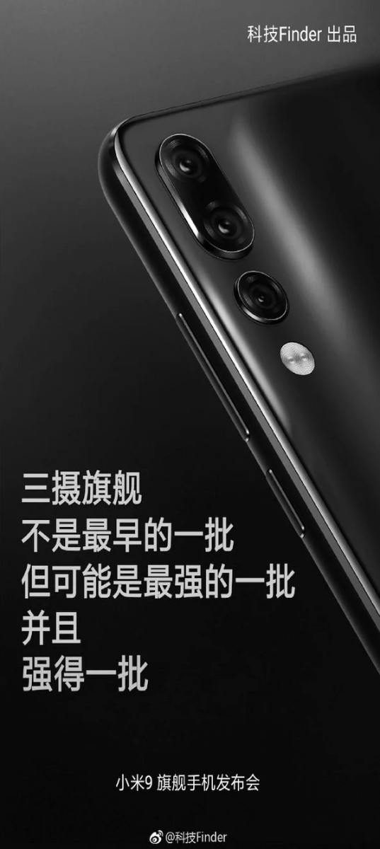 Судя по картинке, Xiaomi Mi 9 достанется тройная камера, исполненная в стиле Huawei P20 Pro. Не похоже, что в ее конфигурацию войдет стереокамера для распознавания жестов. Любопытно, что уже было несколько утечек, в которых говорилось о тройной тыльной камере. Однако, Лин Бин, президент Xiaomi, заявил, что все это не более чем слухи и спекуляции. На задней панели под камерой расположится двухсекционная светодиодная вспышка. Тизер также дает понять, что китайские разработчики оставят на правой грани сдвоенную клавишу управления громкостью и кнопку питания.