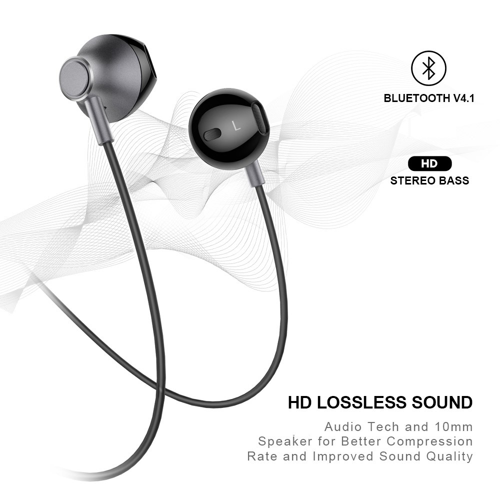 Аксессуар выделяется стильным и эргономичным исполнением. Наушники выпускаются с прицелом на любителей заниматься спортом. Сопрягаются с носителями звука они через Bluetooth 4.1. Дальность действия – 10 метров. Заряжается модель за 1-2 часа, а на полном заряде время автономной работы составляет до 8 часов.