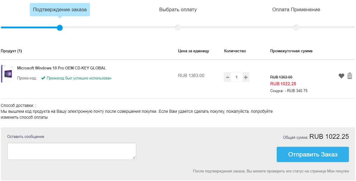 В корзине остаётся только ввести промокод OC25 и перейти к оплате. Заплатить можно разными способами. В MINT комиссия составляет почти 123 рубля, в LIQPAY – около 40 рублей, а в QIWI – 82 рубля. Чтобы не платить комиссию, нужно воспользоваться платёжной системой PayPal. Выбираем соответствующую иконку, жмём «Оплатить сейчас» и подтверждаем транзакцию уже на сайте платёжной системы.