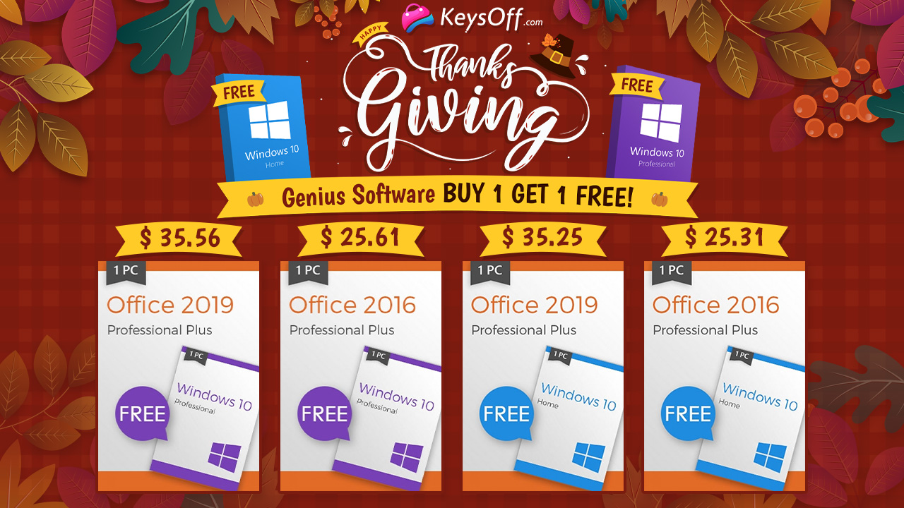 День благодарения в магазине KeysOff – скидки до 55% и бесплатные ключи для ОС Windows 10